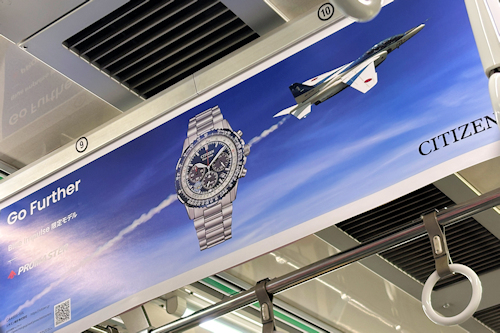 ”ほぼ”始発電車に乗って入間基地に最寄りの稲荷山公園駅を目指しました。西武線では始発の池袋から座って移動できるのがありがたいです。車内の吊り広告ではシチズンとブルーインパルスがコラボした腕時計のポスターが見られテンションを上げてくれました。