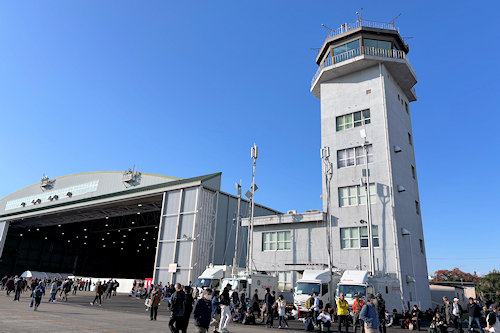 今回の撮影立ち位置として選んだのは管制塔前周辺に決めました。午前中にフライトが集中する航空祭ということで太陽の位置を考えると南寄りの方が条件はいいと考えました。