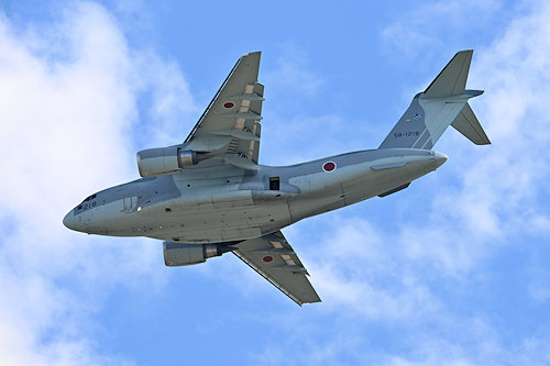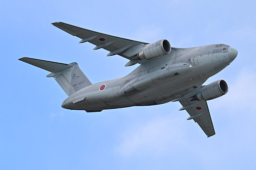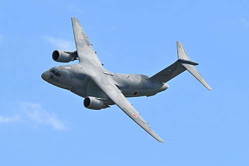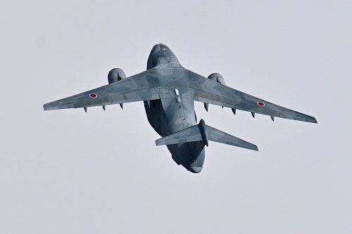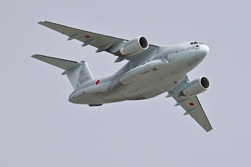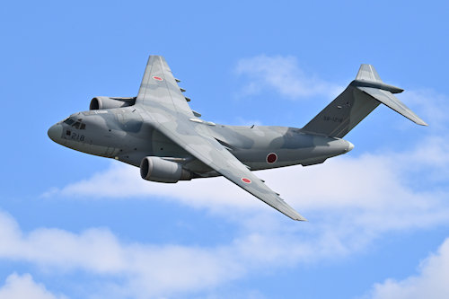 高速で進入してきたC-2。展示飛行の持ち時間は短かったですが 機体の魅力を充分に伝えてくれる展示飛行を見せてくれました。