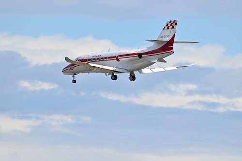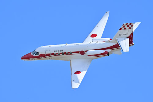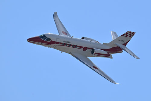 国内飛行場の誘導設備等を実際に空から点検する飛行点検隊のU-680Aをローアングルから。なぜか小さい子供たちからの人気が高いようです。赤の魅力かな?