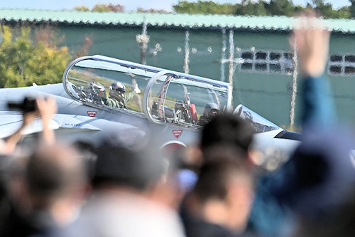 着陸してエプロンへとタキシングで戻るT-4から観客に向けてパイロットが手を振ってくれました。