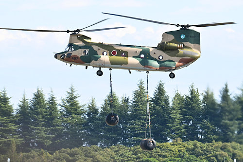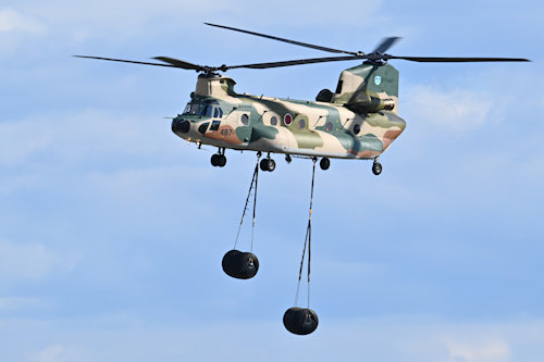 大型輸送ヘリのチヌークによる展示飛行です。以前はハイテンションのナレーションでしたが、今年はトーンを落として落ち着いた説明でした。そのため話も耳に入りやすかったです。