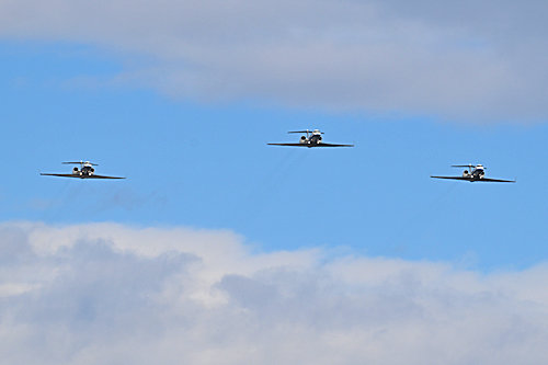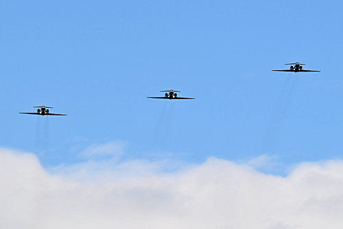 会場を通過した3機編隊はその後約270度の旋回で向きを変えて会場やや正面から進入し、ランディングギアを出したダーティコンフィギュレーション形態で通過しました。