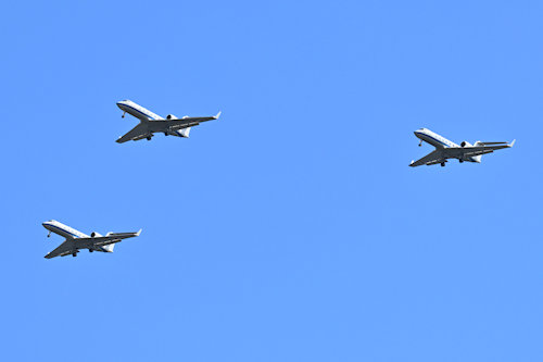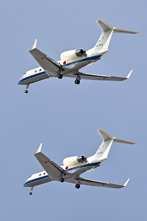 ミニ政府専用機とも言えるU-4はVIP輸送の任務も行います。普段は単機での飛行が多いので編隊飛行の姿は貴重です。