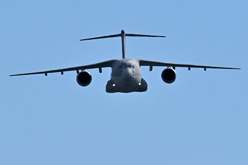 今回の航空戦でのお気に入り写真の1枚になりました。C-2が異なる高度を飛行している様子が撮影できた上に、アンチコリジョンライトの点滅する瞬間が撮れました。