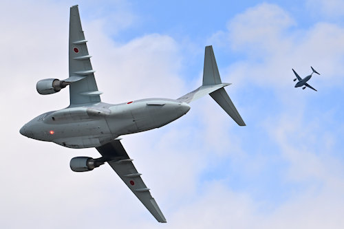先代のC-1が完全に退役したことで今年から入間の顔となったC-2輸送機。2機編隊による航過飛行をおこないました。