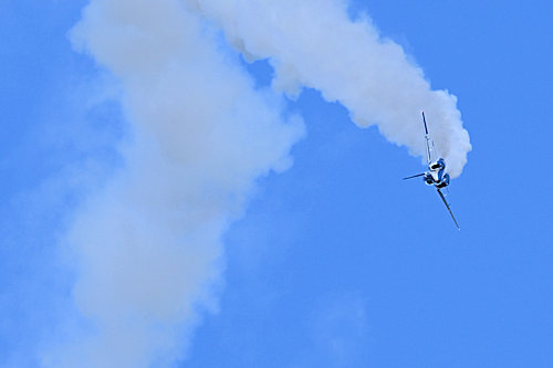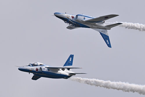 撮影する立ち位置によっては機体間隔隔が接しているようにも見えるバック・トゥ・バック。今回はちょっと距離が開いてしまいました。この課目に関しては離れた場所から超望遠レンズで迫る方がよさそうです。