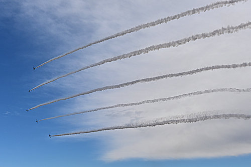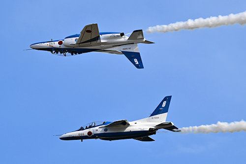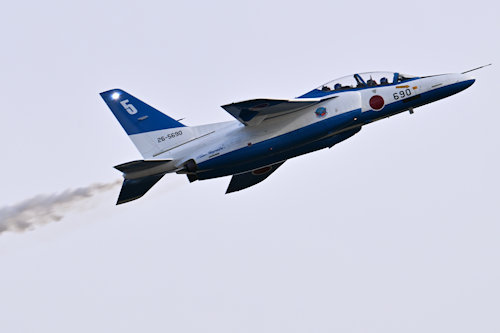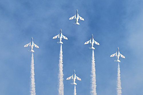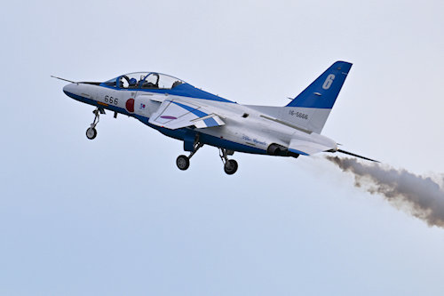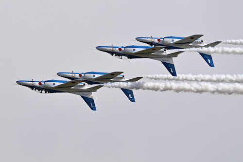 会場左手から進入しタイトなフォーメーションと背中を見せてくれるファンブレイク。機種がT-4になってから導入された課目でショー序盤の人気課目のひとつです。今回は空と光線の条件がいまひとつでクリアな写真は撮れませんでした。