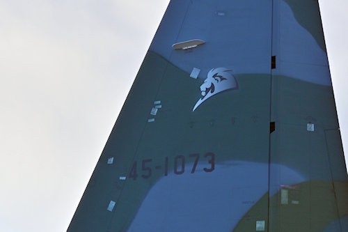 ブルーインパルスの展示飛行が終わり、観客が帰り始めたところで地上展示機の撮影はこれからが本番です。まずは飛行隊マークを新調した第401飛行隊のハーキュリーズが地上展示されました。新マークは先日千歳基地で初めて見ましたが以前のマークよりも精悍になったと思います。