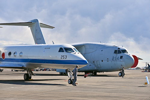 第402飛行隊のU-4とC-2の並び2ショット。自衛隊の輸送任務を担う両機の顔つきはなかなかいけていますね。