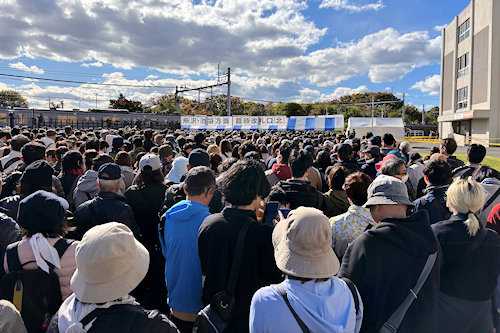 ブルーインパルスは午前中に展示飛行を終え、公式には13時に航空祭が終了となります。地上展示機を見終わって少しは駅も分散しているかな?と期待しましたがご覧のように稲荷山公園臨時改札は大混雑でした。しかし西武線が総力を挙げて輸送を行う結果、数十分待つ程度で無事に電車に乗ることができました。早い時間に帰れるのでまだ明るいうちに家に着ける航空祭は悪くないかも知れません。入間基地航空祭はブルーインパルスのイメージが強く、今回は戦闘機の要素がほとんどありませんでした。戦闘機に興味を持った人は黙っていても百里や小松に足を運ぶだろう…と割り切ればターゲットと内容を差別化して開催するというのは良い戦略なのかもしれません。